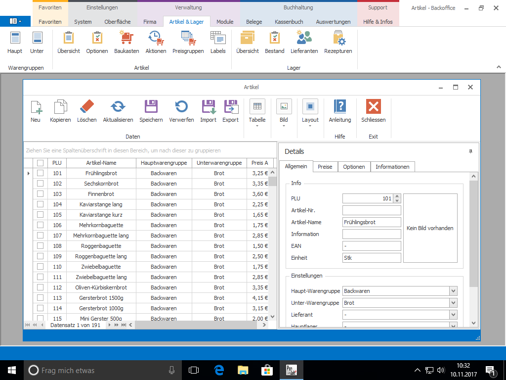 - Unbegrenzte Anzahl an Artikeln, Warengruppen, Touchtasten, usw.